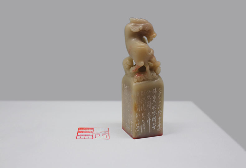 印章從選材、字體設計、篆刻到邊款題字全部由王超鷹先生親手打造,每一步都無可挑剔、盡善盡美。新印章仿佛曠野中踽踽獨行的得道高士,表面收斂,內心隨意,那種看似嚴謹的散漫,散漫之中的嚴謹,合二為一,深刻地浸入到印章的骨髓里。邊款采用小篆雕刻而成,字字璣珠的題詞與蒼勁有力的篆刻,讓巴蜀一品的新印章熠熠生輝。水善利萬物而不爭。拙正,端莊,內涵,大氣,王超鷹先生開創了巴蜀一品品牌文化儒雅的煌煌氣象。