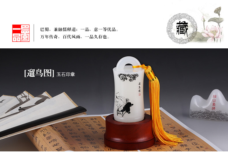 遛鳥圖玉石印章
